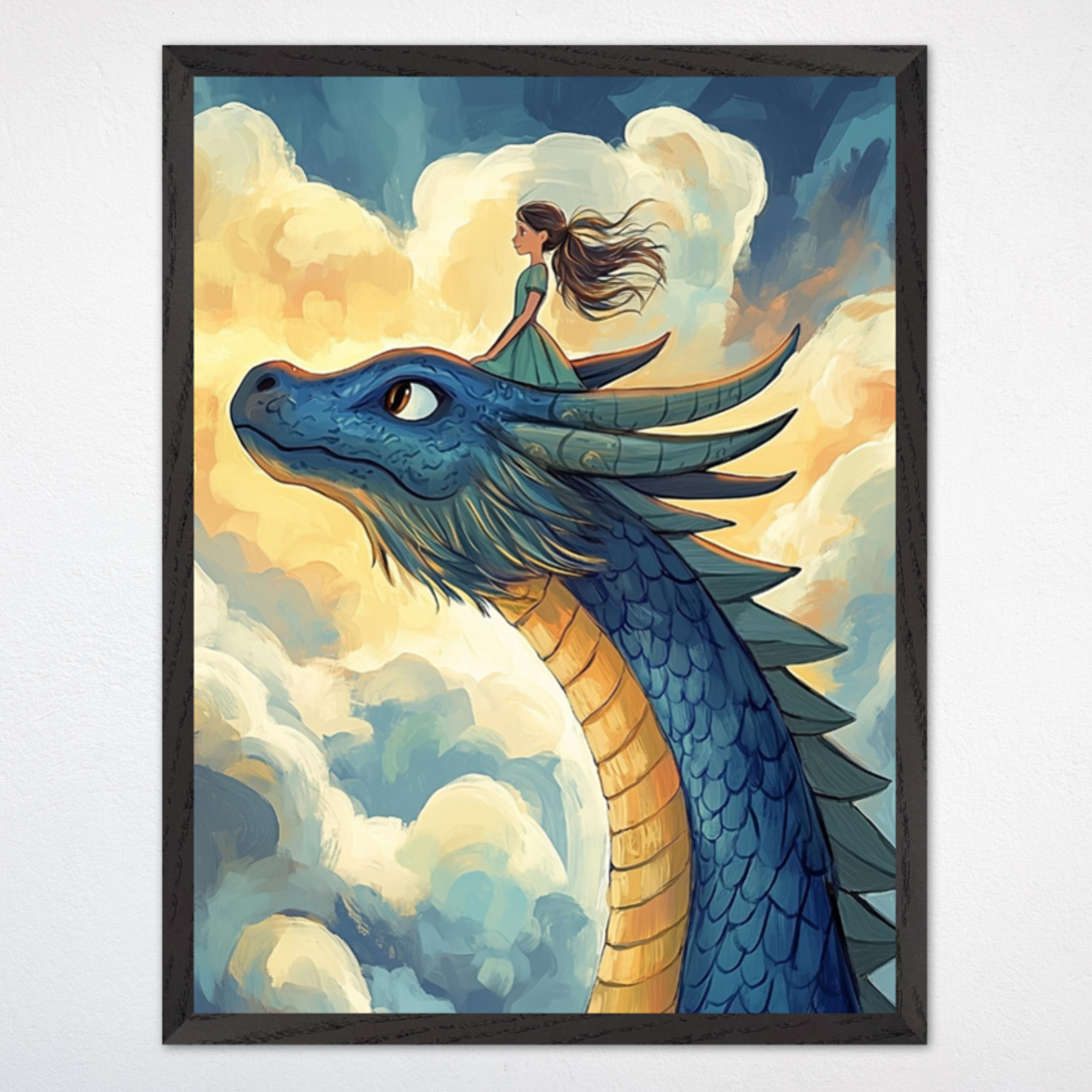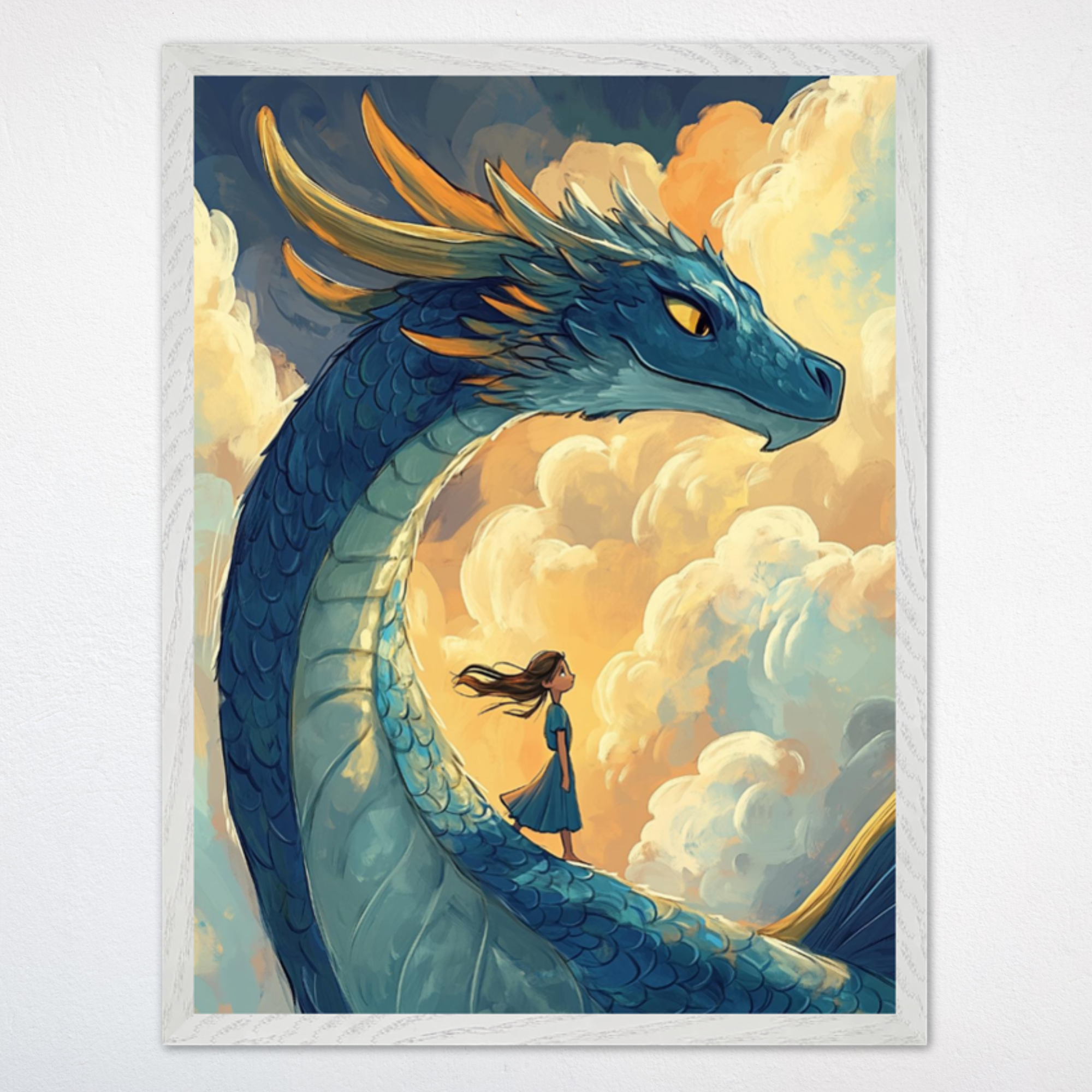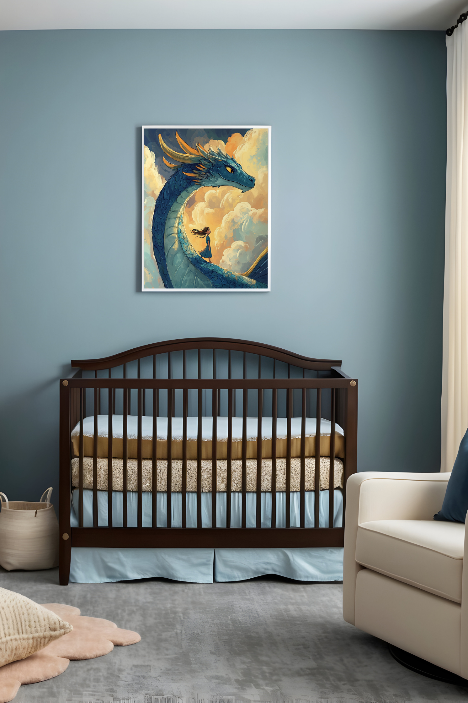 Dragon Friendship Wall Art for Nursery, Playroom or Kids Bedrooms - Cloud Adventure - Sky Queen