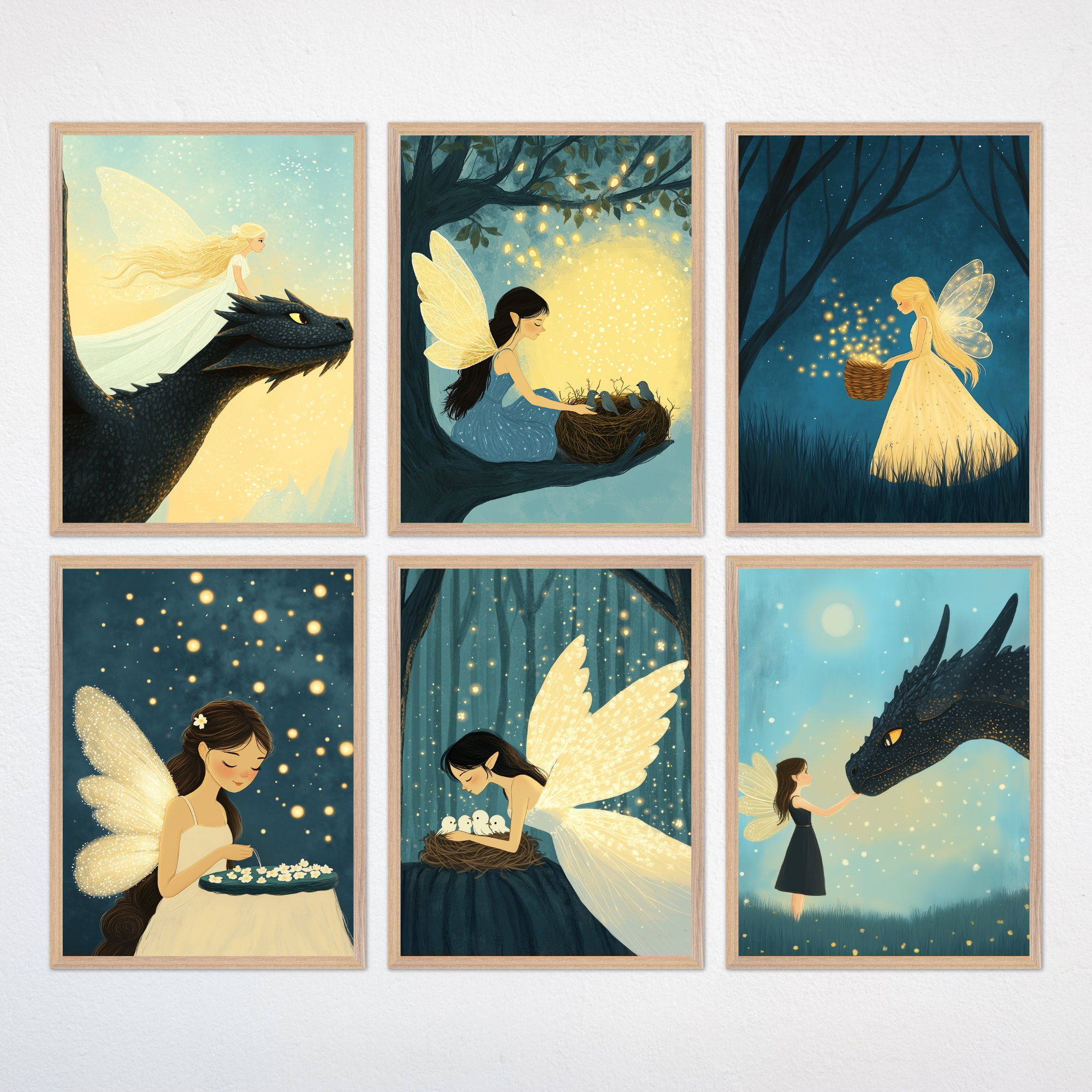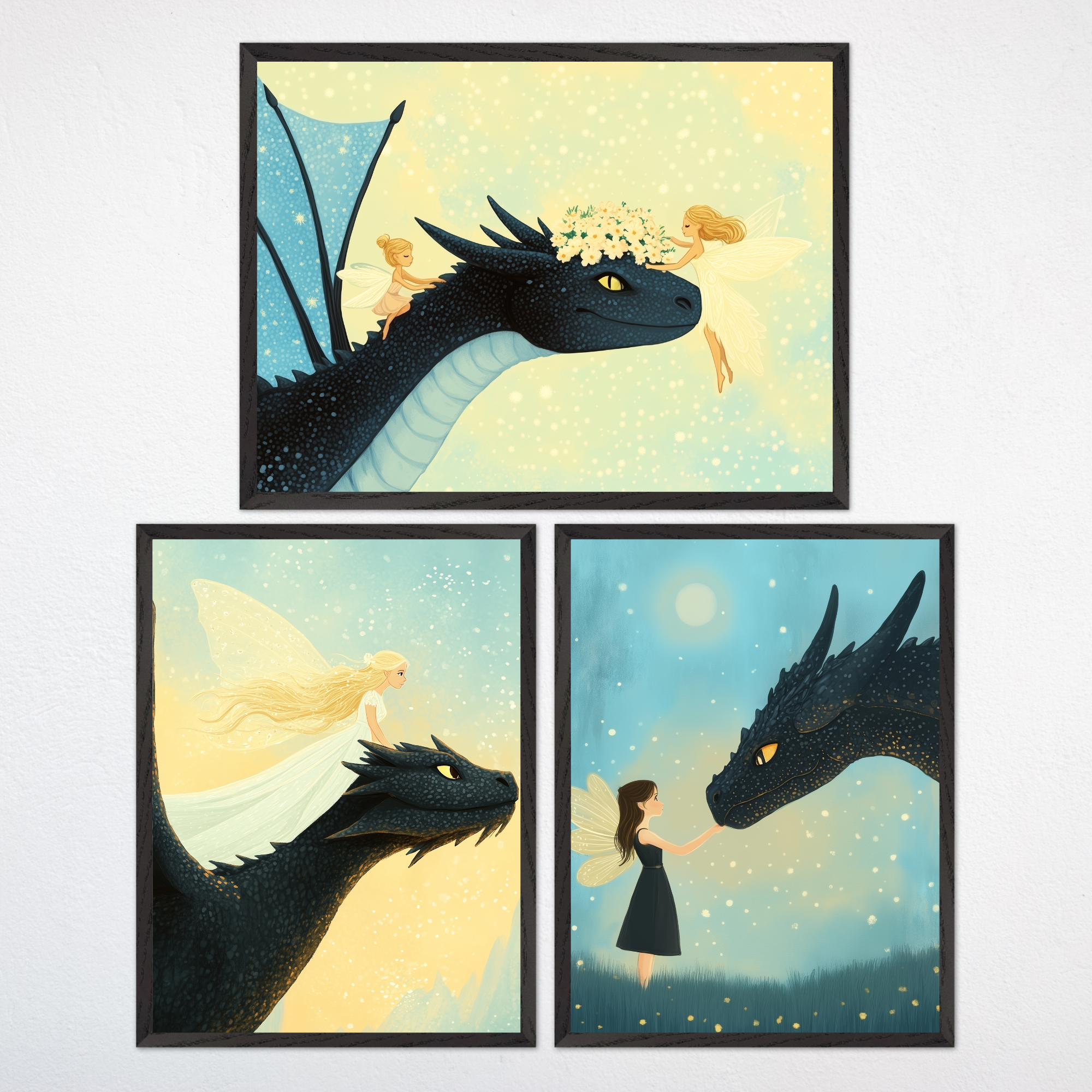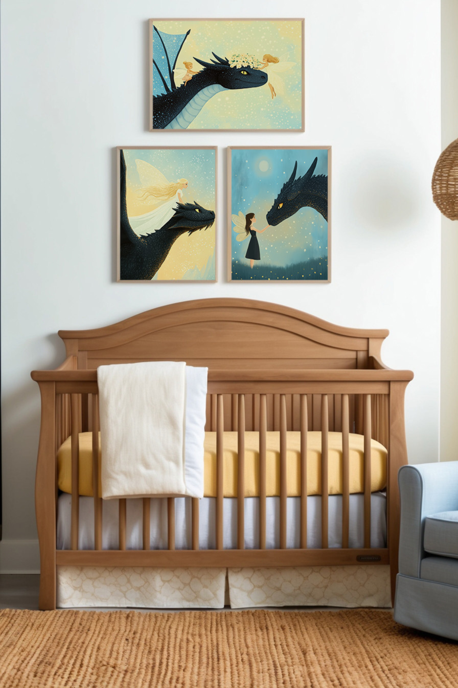 Dragon Friendship Wall Art for Nursery, Playroom or Kids Bedrooms - Cloud Adventure - Sky Queen