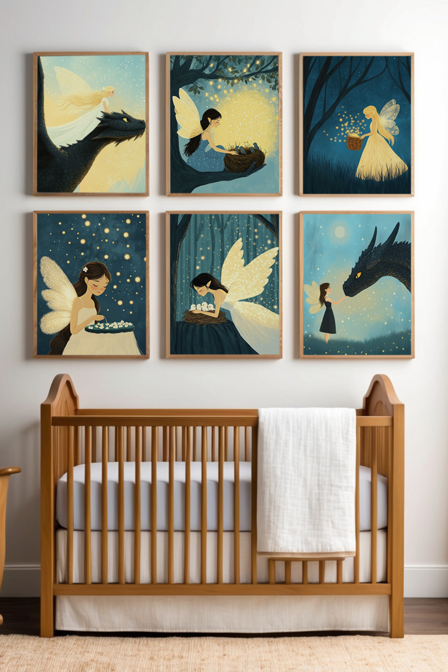 Wishes and Wings Dragon Wall Art for Nursery, Playroom or Kids Bedrooms - Cliffside Adventure View - Wonder Seekers