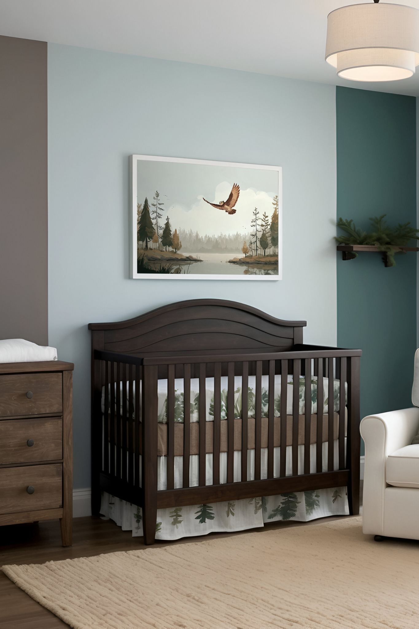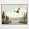 Wanderwood Owl Wall Art for Nursery, Playroom or Kids Bedrooms - Serene Lake and Forest Flight Scene - Sky Drifter