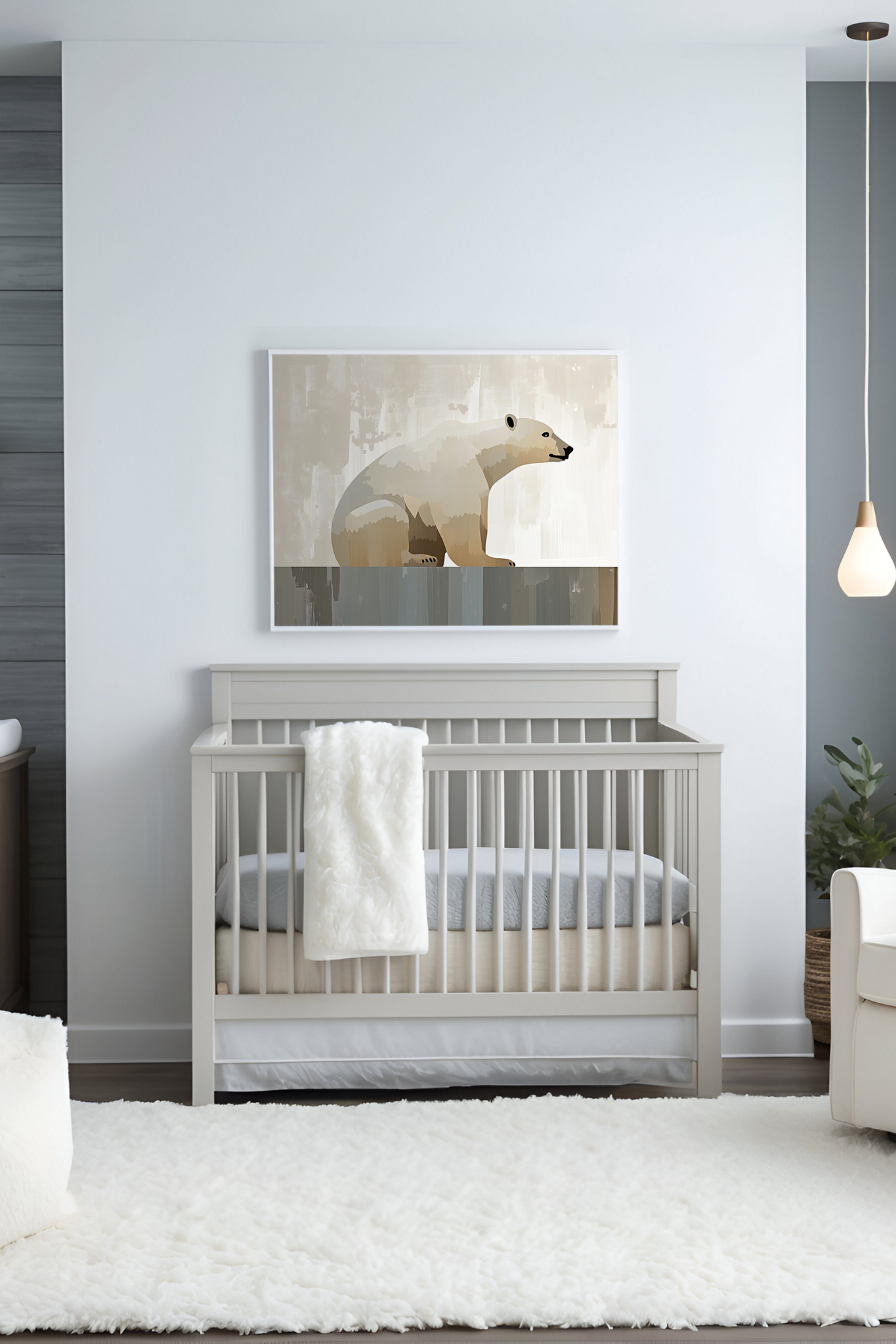 This charming polar bear wall art piece features a gentle polar bear in soft neutral tones, creating a calming, cozy vibe perfect for any young explorer’s space.
