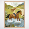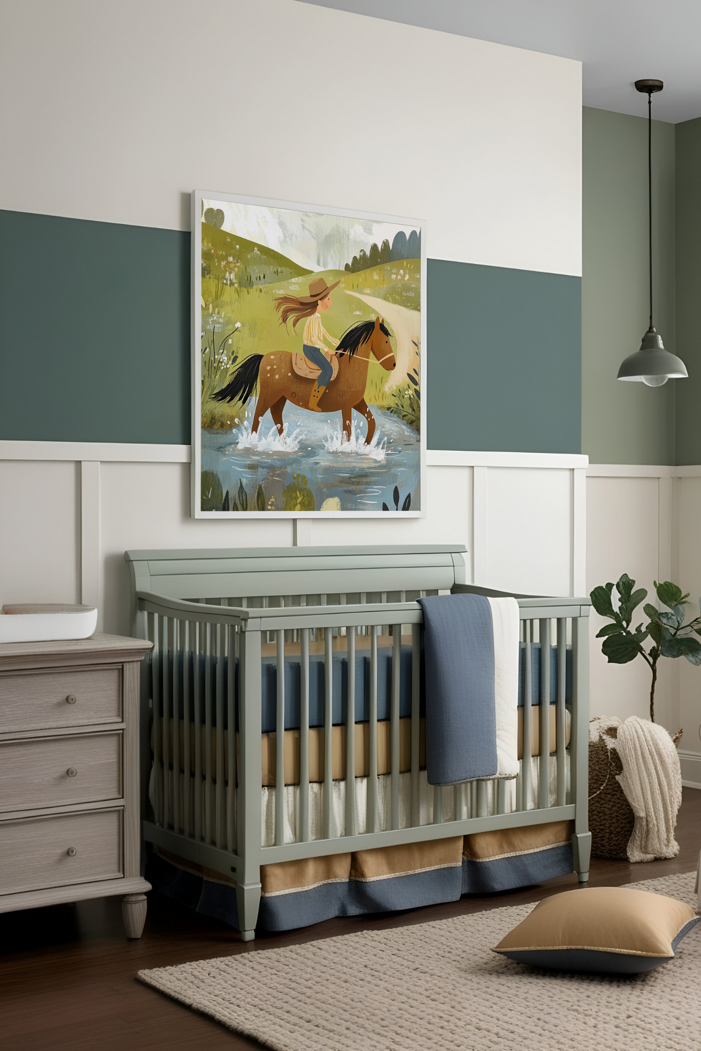 Cowgirl River Ride Wall Art for Nursery, Playroom or Kids Bedrooms - Western Horseback Scene in Nature - Ripple Trail